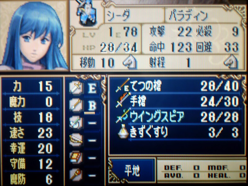 4章でLv20にしたシーダをペガサスナイトに戻し、即「天空のムチ」でファルコンナイトに