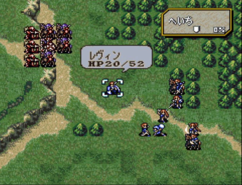 後は1-マーを1体だけ倒し(この場合だとキュアンの東のアーマーになる)キュアンの銀の槍とシグルドの銀の剣2発が全部命中すれば制圧出来るはず。ジャコバンは回避が高いので全部命中させるのに苦労するが、攻撃順番変更でなんとか倒そう。