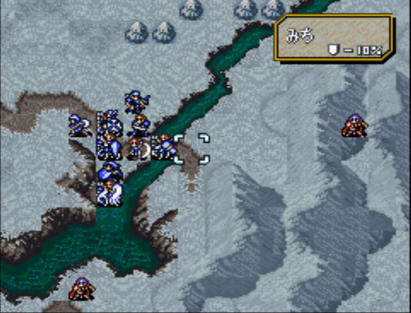 11~15ターン目:デューで吊り橋を架けるのだが、不安であれば架けた後に騎馬隊突撃、アーマー1隊とウインドマージを倒し、シグルドをマイオスに突撃させ必殺で倒し制圧。