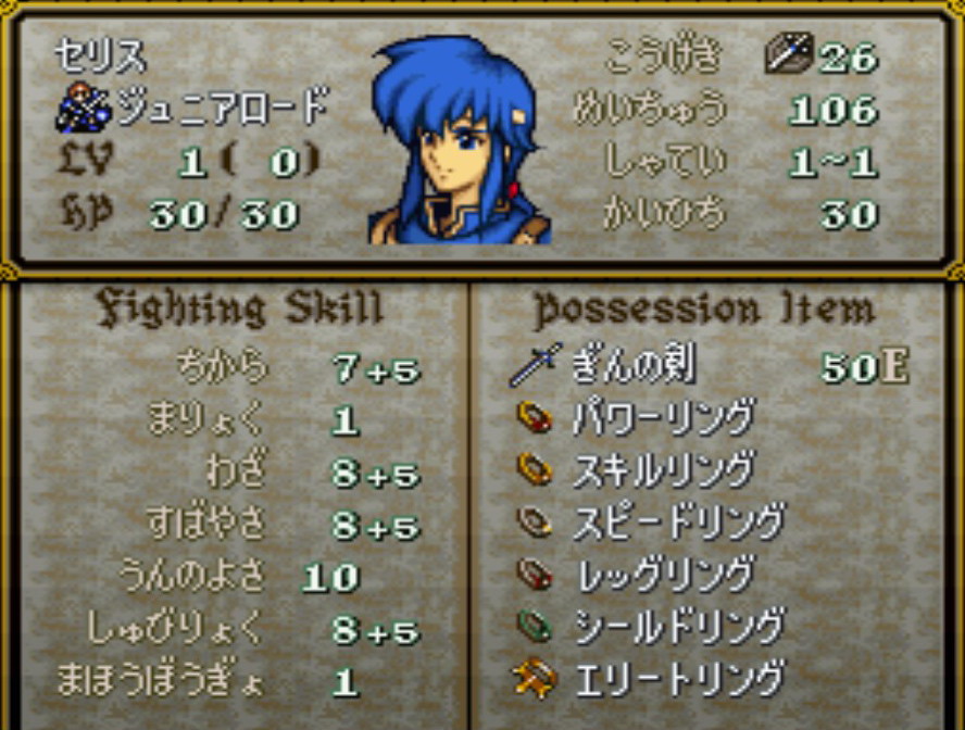 シグルドの力が24だったおかげで初期値が7に・・・。(力25だと初期値8)
