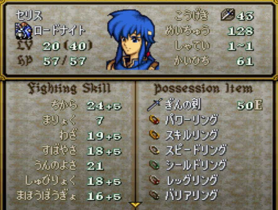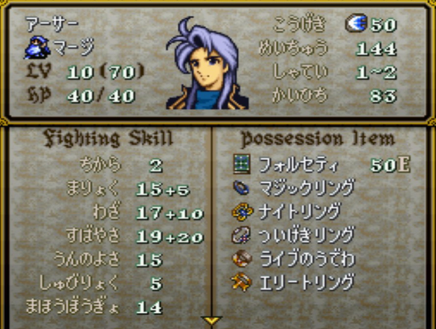 ちなみに回避値の計算式は(速さ-武器の重さ)×2+運の数値
