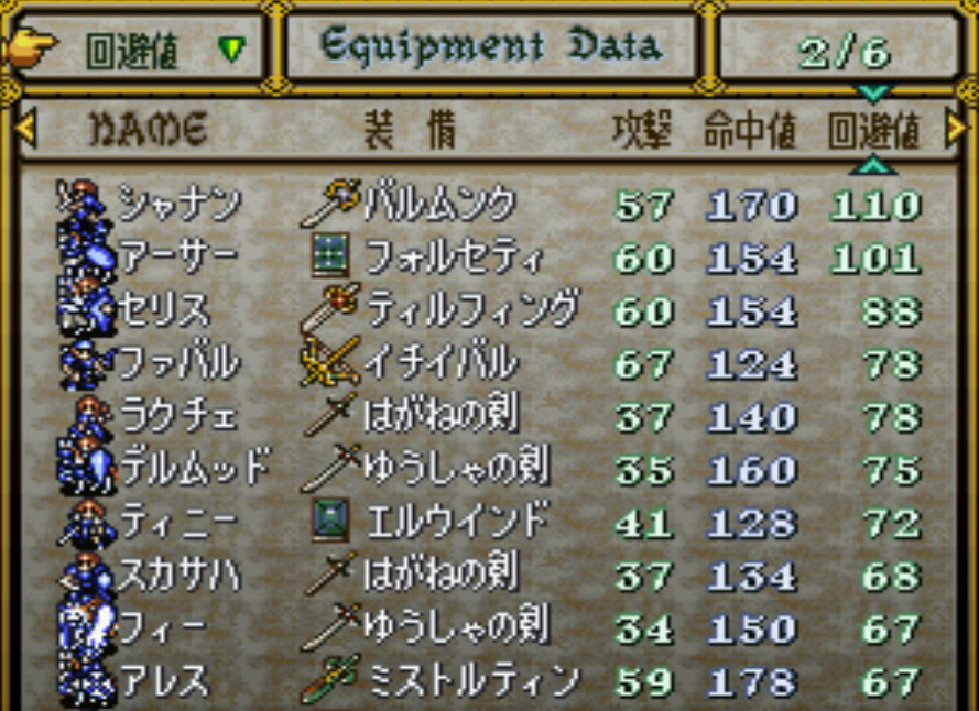 前章で受け取った「ライブの腕輪」はアレスが最適か。「シーフの腕輪」の代わりに持たせてみよう。