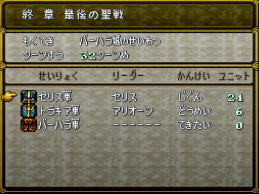 ユリアの位置次第でラナとセティもユリアへ進軍させる。イシュタル隊を早めに倒していれば、ユリアはセリス達の方に来るはず。サイレスをかけてそのままセリスの進軍先のヴェルトマー城までおびきだせればベスト。